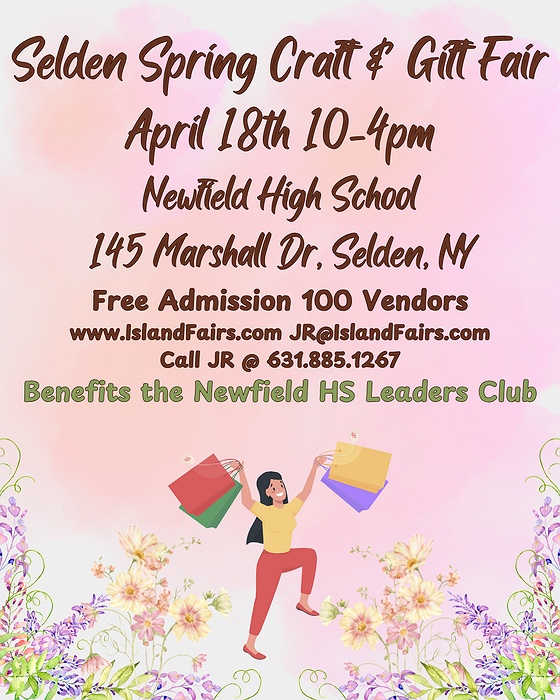 Selden Spring Craft Fair located in the Newfield High School in Selden will host 100 vendors featuring spring decor, jewelry, soap, candles, clothing, fabrics, desserts, crochet, woodworking, and gifts for everyone.